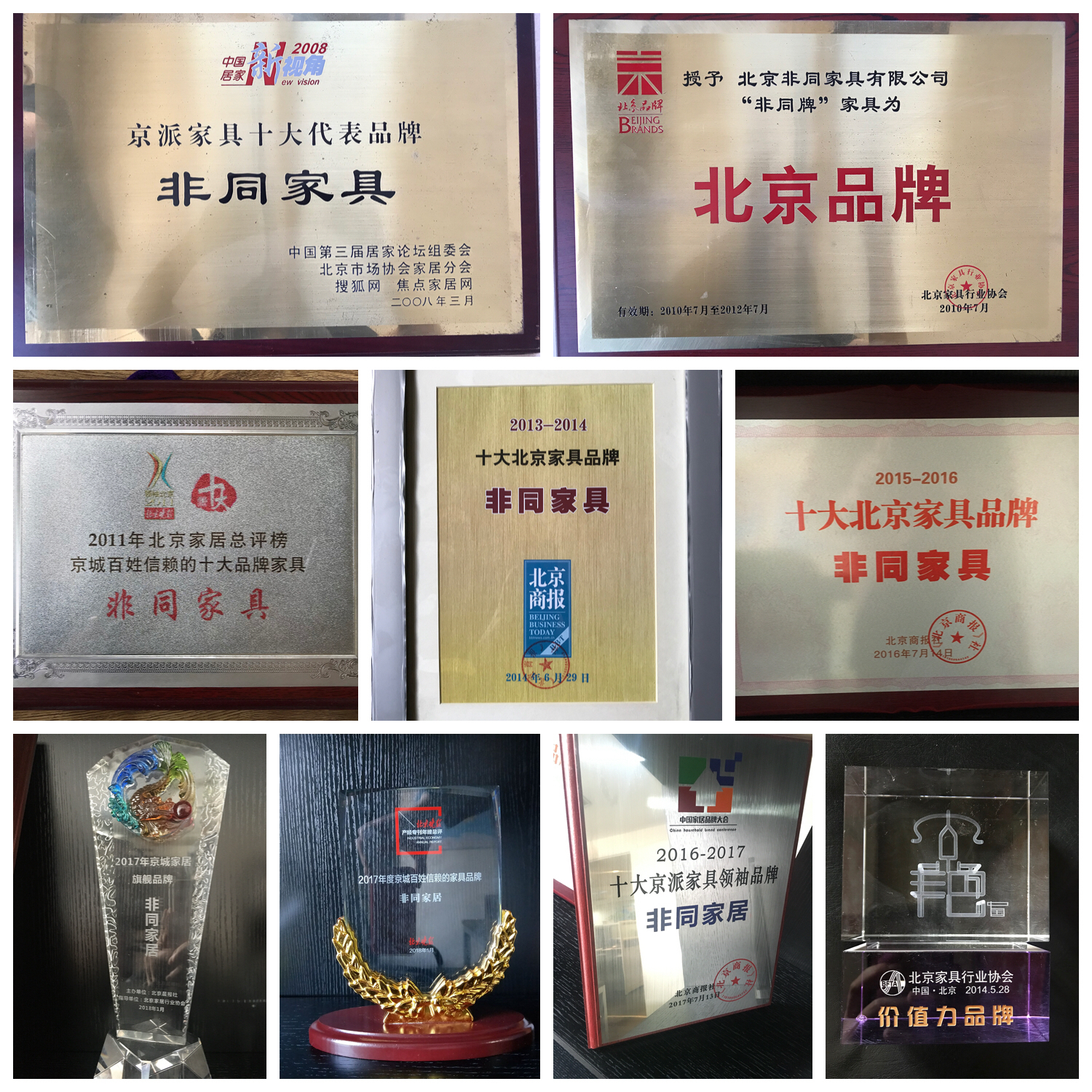 是非同家居曾連續六年獲得過“京城百姓信賴的十大品牌”;以及“京派家居領袖企業”“北京家具行業最具競爭力企業”等;北京家具行業協會也曾鄭重為非同頒發“北京品牌”的榮譽。
