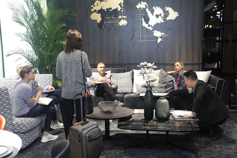 曾建龍、陳德堅、青山周平……這些在設計界響當當又遙遠的名字,在本屆廣州展會于我們的距離又近了;其中,曾建龍先生在3月19日帶領幾十位青年設計師,來到廣州9.1C01非同家居展位,在現場與非同家居原創設計團隊進行了親切交流。