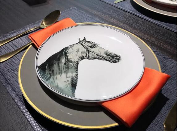 除了家具本身,非同家居本次展位設計也加入了多件“橙意”的軟裝飾品,比如油畫、地毯以及餐巾布、餐巾扣等,另外,其中不乏金屬質地的配飾,讓輕奢的風格更具質感。