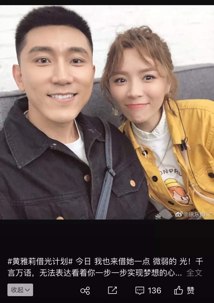 上圖為“借光計劃”的官方微博說,這張圖是黃雅莉籌備展覽時躺在未拆封沙發上的照片。
